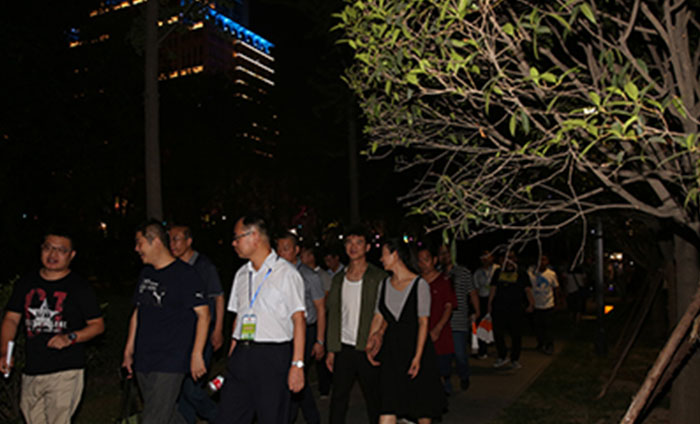 首先考察組一行來到唐城墻遺址公園北廣場(chǎng),高新區(qū)夜景照明及唐遺址公園燈光秀的總設(shè)計(jì)師、北京信達(dá)電通科技董事長(zhǎng)王春龍先生給眾領(lǐng)導(dǎo)講解由信達(dá)電通設(shè)計(jì)策劃的高新區(qū)夜景亮化提升方案。