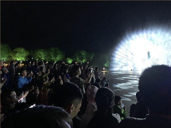 為確保首秀的效果,自6月25日起信達電通主創團隊多次夜間試演調試?,F場吸引了眾多人潮和多方媒體的廣泛關注,守望都市、長春播報、新文化報等媒體相繼進行報道。信達電通設計總監孫彥飛先生在試演現場接受采訪,向各大媒體解答水景秀的特色設計理念和技術實施問題。
