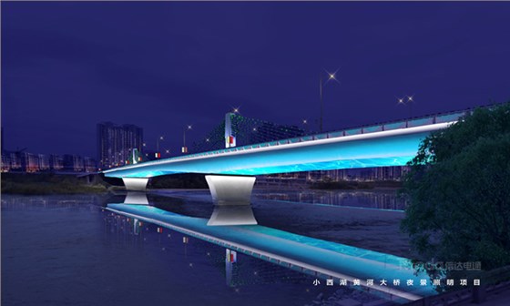 我們可以通過圖片觀察到橋梁上的燈具部分有脫落現(xiàn)象,而且線纜外露有安全隱患并且影響美觀。在小西湖黃河大橋照明設(shè)計中我們采用藍(lán)、白白至純之色,體現(xiàn)橋體的晶瑩剔透,純凈如水,晶瑩如露珠。