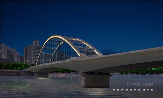 元通大橋北起靖遠路高架橋,主跨跨越黃河,全長459米,屬于城市次干路。信達電通聯合橋梁照明設計師對元通大橋進行全面調研定并針對橋梁功能、夜景需求進行設計,設計手法動靜結合,簡單與復雜、精致與粗獷、明與暗、虛與實、冷與暖在燈光中體現。